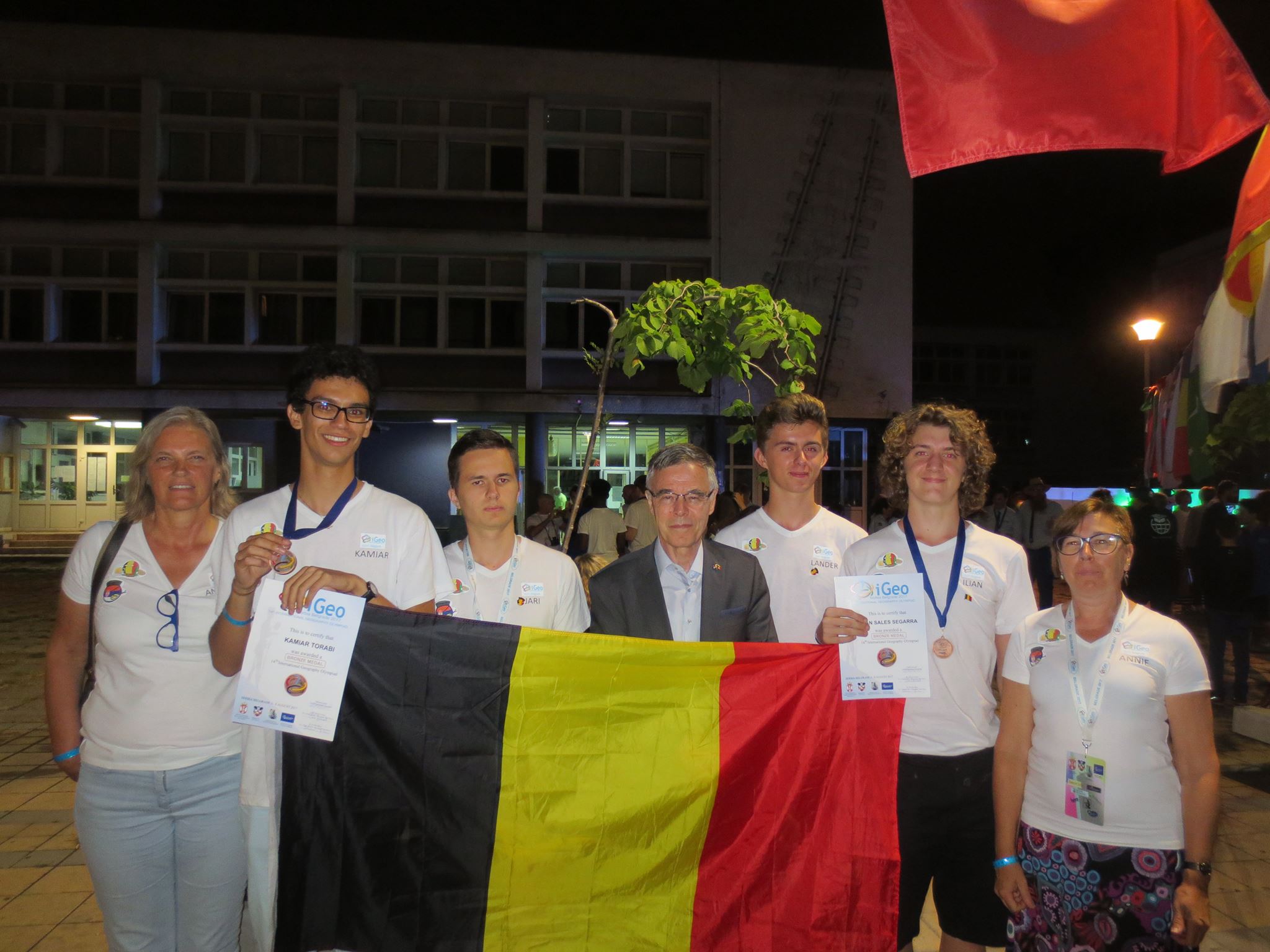 | Video over de iGeo 2017 | Belgisch team met hun gids | Net na de proclamatie |