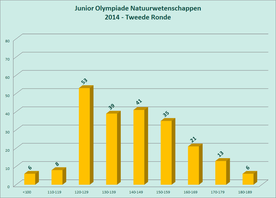In totaal behaalden 237 leerlingen de cesuur van 161 (/240) waardoor ze zich plaatsten voor de tweede ronde van de Junior Olympiade Natuurwetenschappen. Hun leraren bevestigen hun deelname aan de tweede ronde